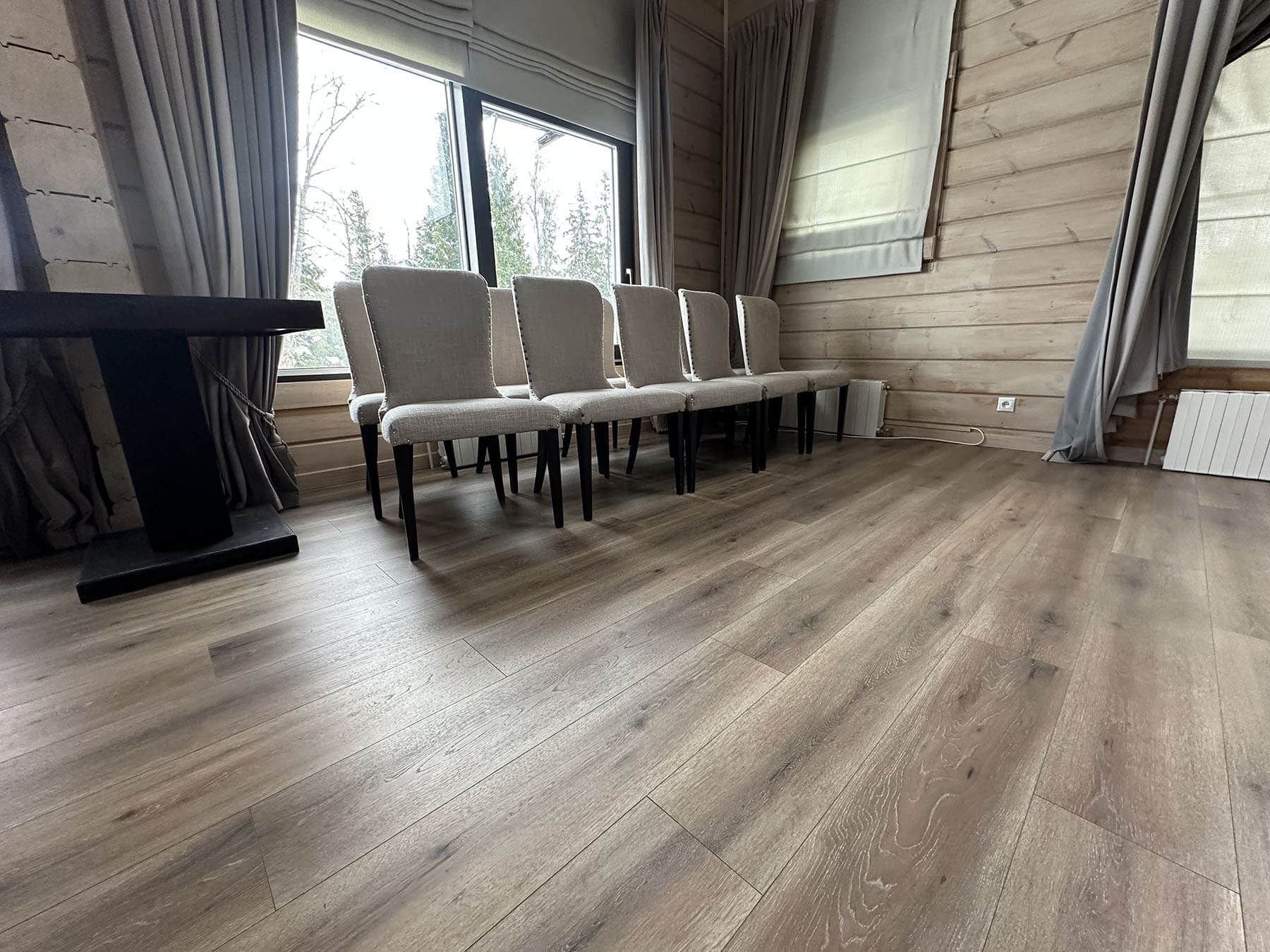 Высший класс износостойкости (AC5), 100% водостойкость и сертификат пожарной безопасности КМ2. Идеально для офисов, ресторанов, медицинских учреждений и общественных пространств.
